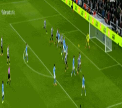 第68分钟,多库和B席战术角球传中造成了纽卡门前混战,霍尔解围变乌龙助攻,迪亚斯近距离抽射产生折射弹进网窝,1:1!曼城立马做出回应,这也是迪亚斯4年多以来的首个英超进球。第70分钟,场上风云再起;沃尔特马德发挥身高优势高高跃起头球摆渡,后门柱的吉马良斯头球接力击中了立柱,哈维-巴恩斯近距离补射再度将比分反超,1:2!双方浪费了不少得分机会后,又在短短7分钟合力打进3球。