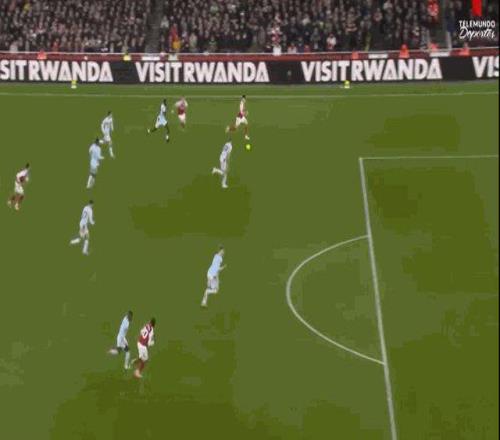 第28分钟,阿森纳前场打出精妙的配合,马丁内利禁区前沿迎球射门高出横梁。