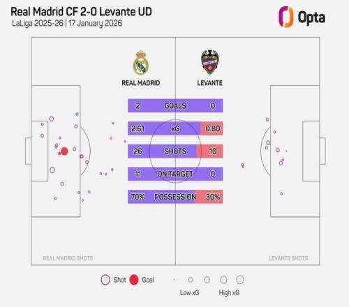 西甲第20轮,皇家马德里主场2-0击败莱万特,此役皇马完成了26次射门,这是有统计以来皇马主帅西甲首秀第三多。