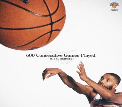 纽约尼克斯在主场以一场54分的狂胜羞辱了同城对手篮网,但比赛最大的新闻,或许并非比分牌上悬殊的120-66,而是悄然诞生的一项属于坚韧的里程碑。此役首发出战24分钟的米卡尔·布里奇斯,在9投5中轻松贡献11分4篮板4助攻的全面数据后,将自己名字刻在了一项现役独一的纪录上:连续第600场NBA常规赛出战。