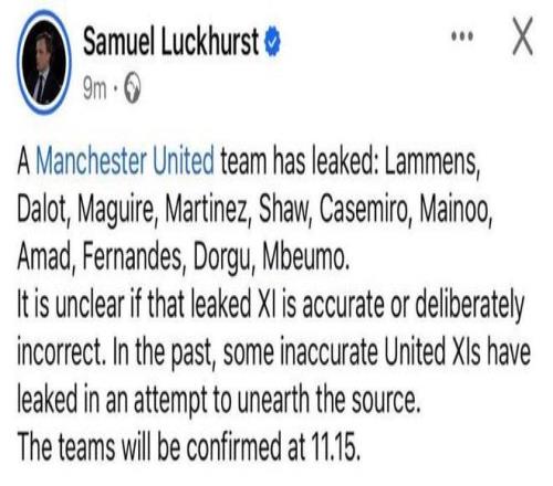 据英国《太阳报》报道,曼联再次展开内部调查,希望确定是谁在曼彻斯特德比战赛前泄露首发阵容。该报在比赛前几小时公布了正确的首发阵容,让俱乐部管理层觉得脸上无光,因为他们过去多年数次试图杜绝这种泄密事件,却依然总有意外发生。