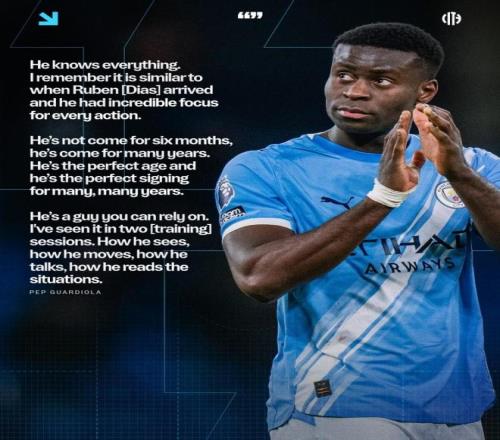 瓜迪奥拉说道:“他知晓一切,我记得这和鲁本·迪亚斯刚来时很像,他对每一个动作都有着令人难以置信的专注。” 将格伊与球队后防核心鲁本·迪亚斯相比,显示了瓜帅对其能力和职业态度的充分认可。格伊的迅速融入和出色表现,对近期防线面临挑战的曼城而言至关重要。