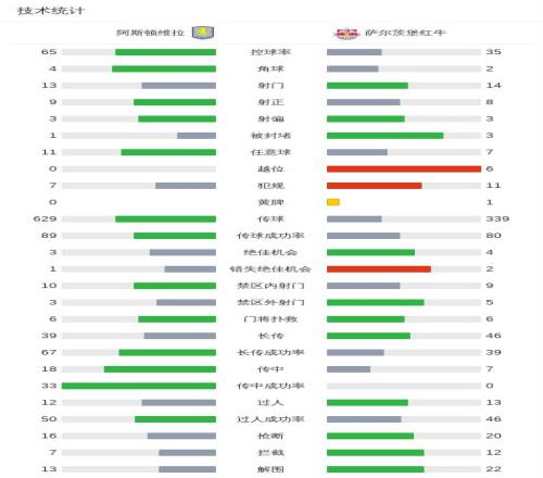 第33分钟,明斯失误,科纳特门前扫射破门,维拉0-1萨尔茨堡红牛