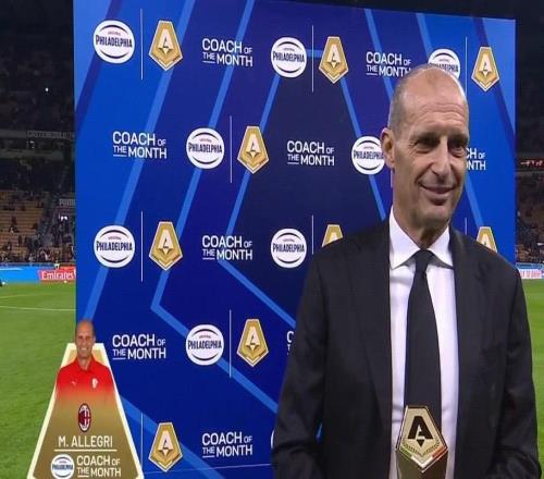 在意甲第8轮主场迎战比萨的比赛开始前,米兰主教练阿莱格里领取了一个属于他的奖项。这个奖项就是意甲联赛的9月最佳教练奖,米兰在9月参加了3场意甲联赛的比赛,对手分别是博洛尼