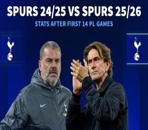 英超第14轮战罢,德国转会市场网站列出了热刺本赛季英超关键数据与上赛季同期对比,积分、进球、丢球和排名都更差了。热刺2024-25赛季英超前14场过后20分、进28球、丢15球、排